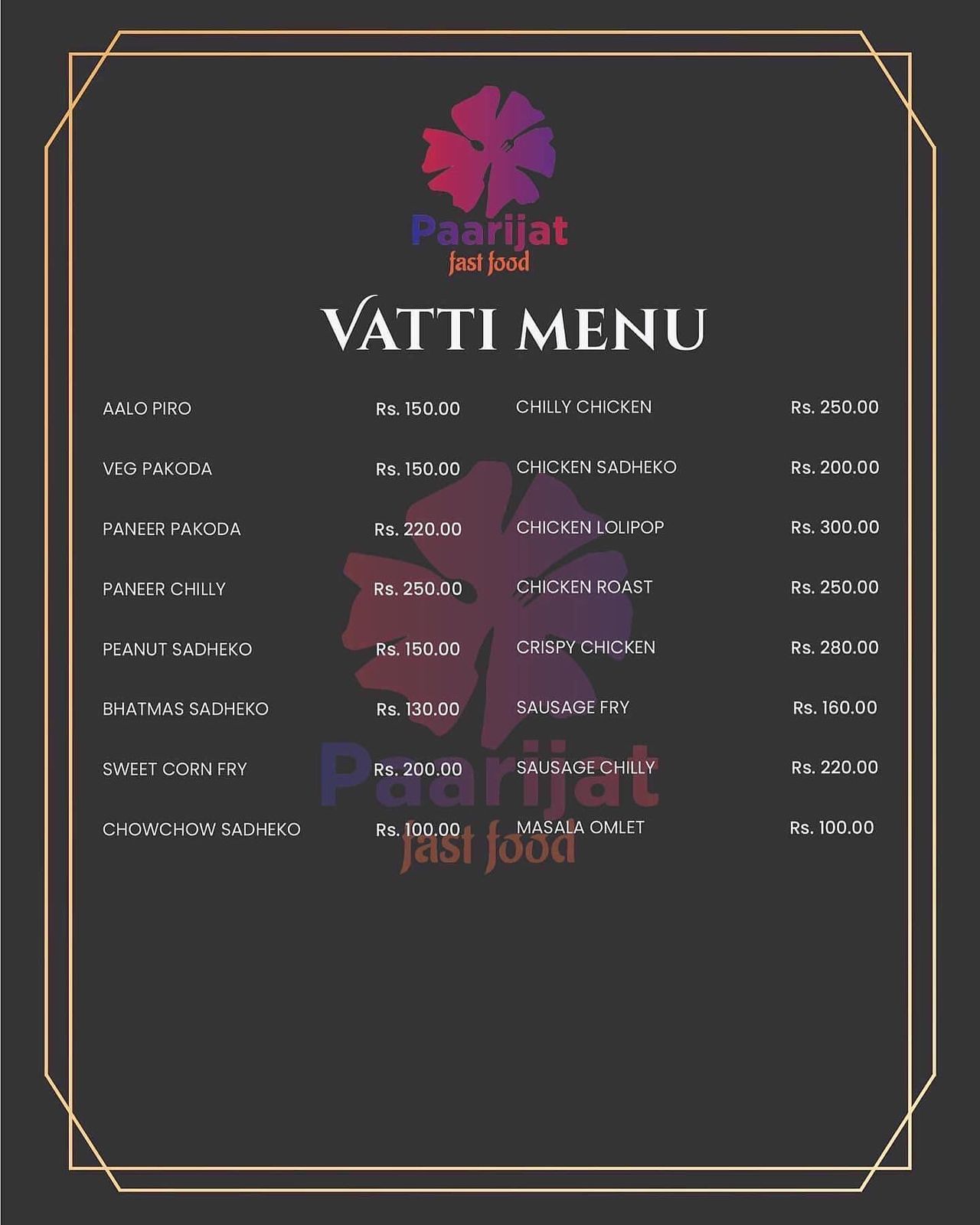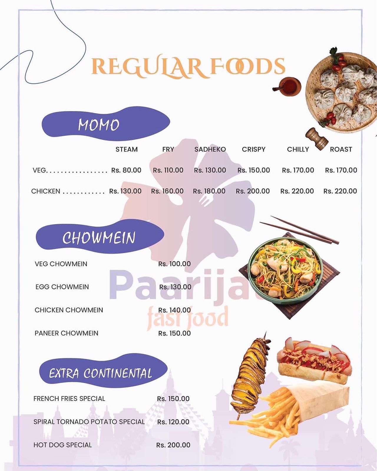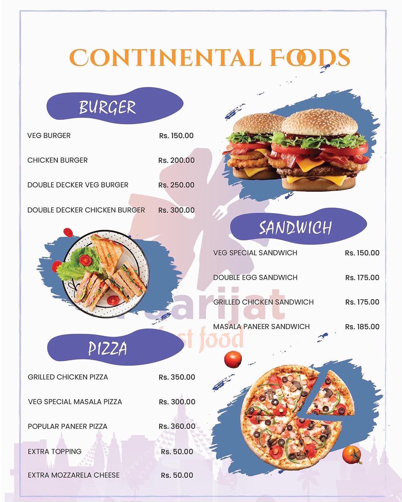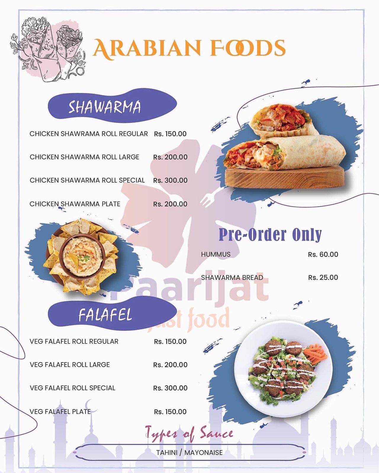 - Fast food mainly Arabic and Continental foods